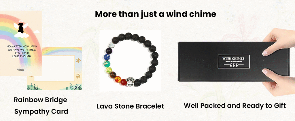 • 🎁 COMPLETE SET: Includes 1 personalized paw wind chime, 1 lava stone bracelet, 1 rainbow bridge sympathy card, and 1 pen – everything needed in well packed gift box.